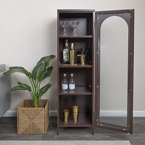 Creative Co Op Solstice Metal Cabinet With Arched Glass Door Brown Ebay